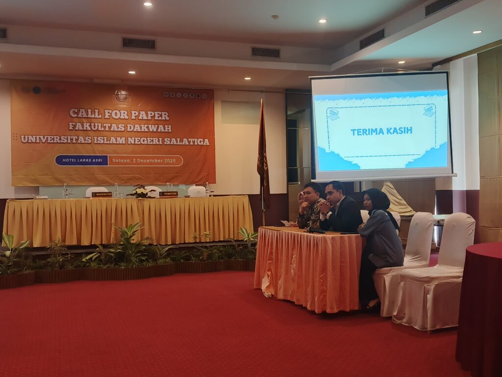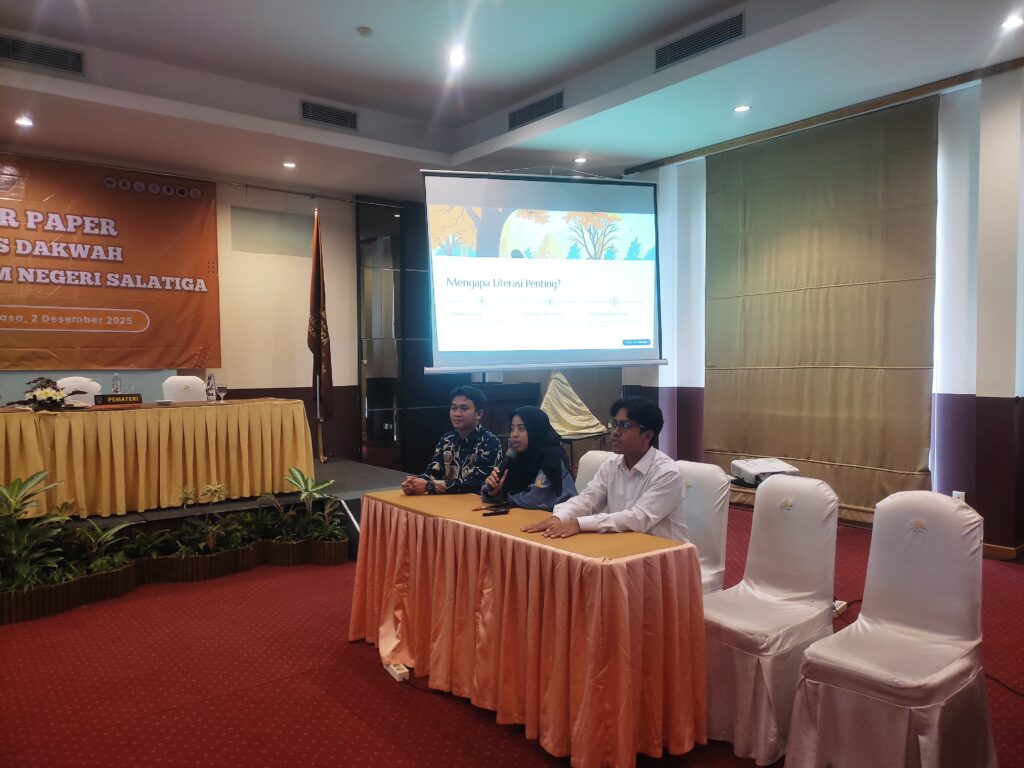 Salatiga, 2 Desember 2025 – Dosen dan mahasiswa Program Studi (Prodi) Perpustakaan dan Sains Informasi (PdSI) Fakultas Ushuluddin, Adab, dan Humaniora (FUADAH) UIN Salatiga menunjukkan kontribusi aktif dalam forum akademik dengan berpartisipasi sebagai presenter pada Call for Paper yang diselenggarakan oleh Fakultas Dakwah UIN Salatiga. Acara yang mengusung tema “Masa Depan Dakwah dan Keilmuan Islam di Era Transformasi Digital Global” ini berlangsung sehari, mulai pukul 08.00 hingga 16.00 WIB, di Hotel Laras Asri, Salatiga.